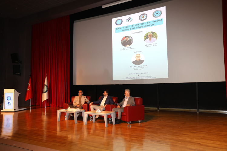 Bursa Uludağ Üniversitesi'nin (BUÜ) 50. yıl kutlamaları kapsamında gerçekleştirilen 'Sporda Daha Büyük Hedeflere' isimli panelinin konukları Bursaspor Başkanı Enes Çelik ve spor yorumcusu Bilgehan Demir oldu. Öğr. Gör. Nazım Gürak'ın moderatörlüğünde düzenlenen programı BUÜ Rektörü Prof. Dr. Ferudun Yılmaz, Spor Bilimleri Fakültesi Dekanı Prof. Dr. Ramiz Arabacı, üniversite yöneticileri, akademik ve idari personel ile çok sayıda öğrenci takip etti.