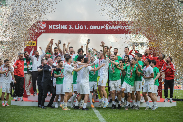 TFF 3. Lig 1. Grup'ta şampiyon olan Bursaspor, Bornova 1877 maçının ardından düzenlenen törenle kupasını aldı.
