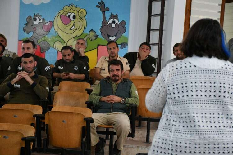Programda Hayvanat Bahçesi’nde görevli personele yönelik “Kafeste Yaşayan Canlı Bakımı Eğitimi” verildi. Uludağ Üniversitesi Veteriner Fakültesi Öğretim Üyesi Prof. Dr. Ebru Yalçın, hem hayvan refahını sağlamak hem de muhtemel iş kazalarının önüne geçmek için yapılması gerekenler hakkında bilgi verdi.