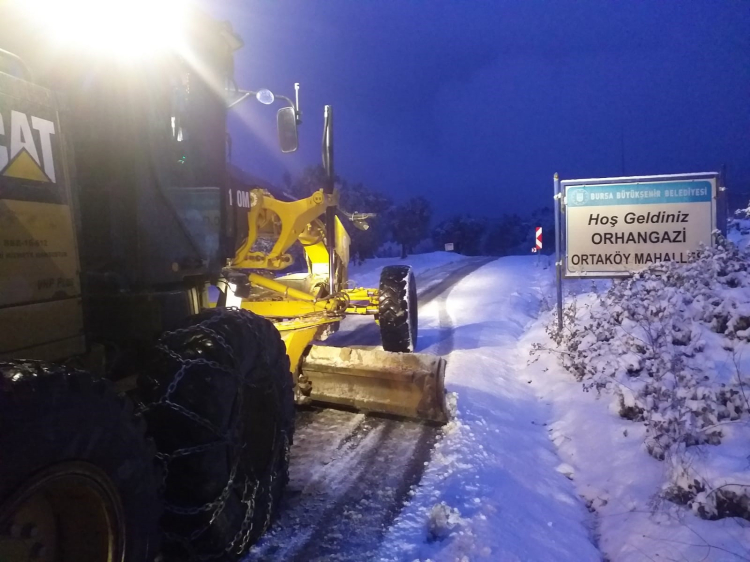 Kar yağışı kent genelinde etkisini gösterirken Bursa Büyükşehir Belediyesi Ulaşım Daire Başkanlığı Yol Bakım ve Onarım Şube Müdürlüğü, karla mücadele çalışmaları kapsamında iki vardiya halinde toplam 460 personel, 65 iş makinası, 35 kar küreme, 21 kürekli tuzlama ekibi ve 38 araçla kardan kapanan 143 mahalle yoluna müdahale etti. Çalışmalar kapsamında Mustafakemalpaşa’da 22, Keles’te 16, Nilüfer’de 15, Kestel’de 14, Karacabey’de 12, İnegöl’de 11, İznik’te 9, Osmangazi’de 8, Büyükorhan’da 7, Orhangazi’de 6, Gemlik’te 5, Orhaneli’de 5, Yenişehir’de 5, Gürsu’da 4, Mudanya’da 3 ve Yıldırım’da 1 mahallenin yolu trafiğe açıldı. Kapalı mahalle yolu bulunmazken, ekipler yağışın devam ettiği bölgelerdeki çalışmalarını kesintisiz sürdürüyor.
