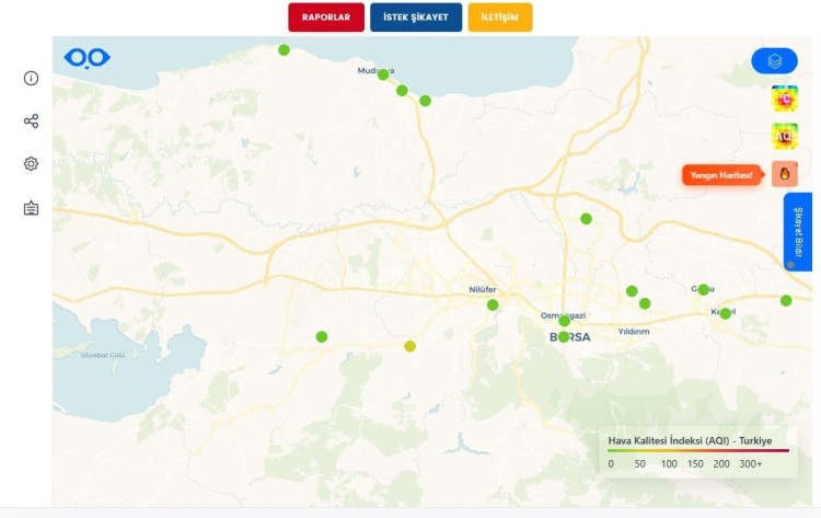 Bursa Büyükşehir Belediyesi, hava ve gürültü kirliliğinin tespiti için geçtiğimiz aylarda devreye aldığı hava kalitesi izleme sistemine yangın izleme sistemini de entegre etti.