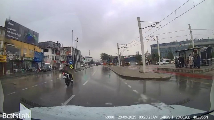 O anlar cep telefonu kamerasına saniye saniye yansırken, kazayı gören vatandaşlar panikle sürücünün yardımına koştu. Şans eseri ciddi bir yara almayan motosikletli, kendi imkanlarıyla ayağa kalktı.