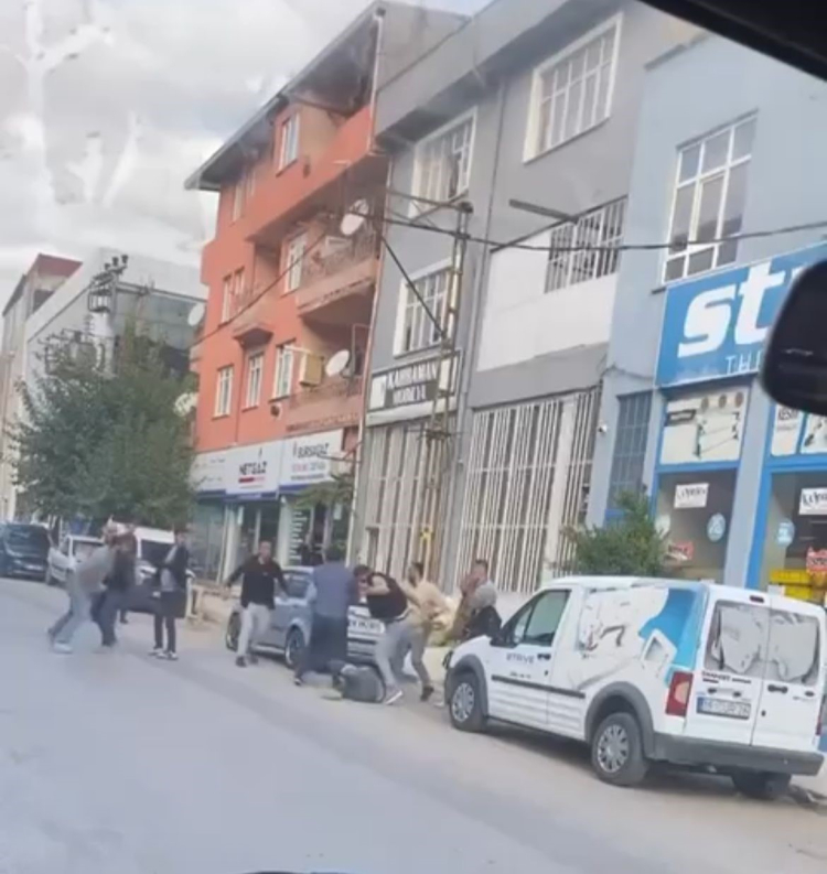Kısa sürede büyüyen tartışmaya tarafların yakınları da dahil olunca tekme ve yumruklar havada uçuştu. O anlar güvenlik kamerasına anbean yansırken, tarafları çevredekiler güçlükle ayırdı.