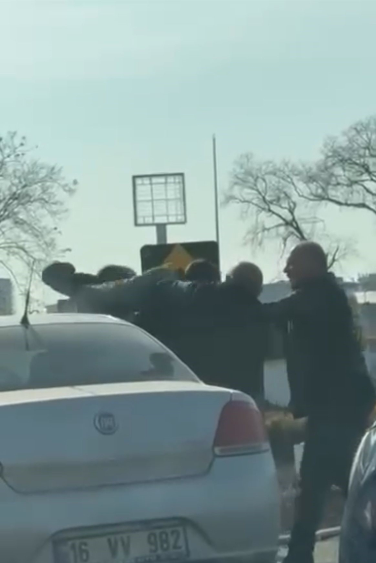 Bursa’da iki sürücü yol verme tartışması nedeniyle araçlarından inip, tekme tokat kavga ettiler.