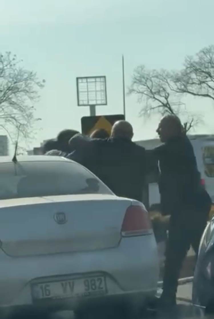 İddiaya göre, yoğun trafikte ilerlemeye çalışan iki sürücü yol verme meselesi nedeniyle sözlü tartışmaya başladı. Kısa sürede büyüyen tartışma kavga dönünce, öfkeli taraflar araçlarından inip bir birlerine tekme tokat vurmaya başladı. Öfkeli tarafların caddeyi ringe çevirdiği anlar kameraya yansırken, tarafları çevredekiler ayırdı.