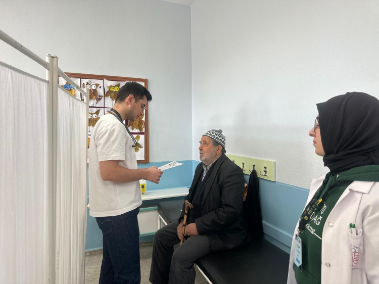 Topluluk Danışmanı Prof. Dr. Sinan Çavun, toplam 100 tıp fakültesi öğrencisi ve hekimin katıldığı projede okul bahçesinde kurulan ve projeye adını veren çadır içinde ateş, nabız ve tansiyon ölçümü yapıldı bilgisini verdi. EKG cihazı, röntgen, solunum fonksiyon testi ve göz muayenesi ile hastaların daha detaylı taramalarının gerçekleştirildiğini aktaran Prof. Dr. Sinan Çavun; “Diyetisyenimiz, hekimlerimizin yönlendirdiği hastalarla görüşmeler yaptı. Köy halkına ilaç kullanırken yapılan hatalar hakkında bilgilendirme semineri verildi. 414 hastanın muayene edildiği köyde aynı zamanda bütün çocuklara da göz taraması yapıldı” dedi.
