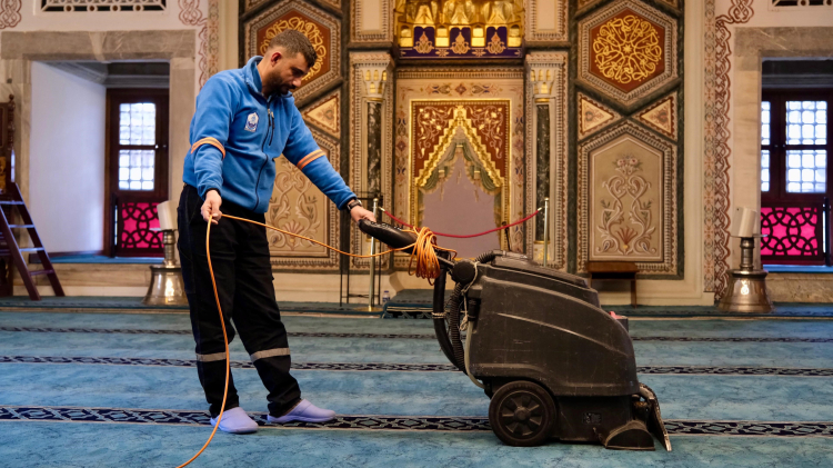 Temizlik İşleri Müdürlüğü ekipleri tarafından yürütülen çalışmalar kapsamında cami içleri ve çevrelerinin temizliği titizlikle yapılıyor. Belediye ekipleri, cami içlerinde genel temizlik yaparken cami bahçelerinde ise çöp toplama, süpürme ve yıkama işlemleri gerçekleştiriyor.