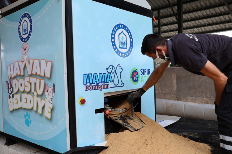 Yıldırım Belediyesi’nin topladığı yemek atıkları, Mama Üretim Tesisi’nde kedi köpek mamasına dönüştürülerek başta Sokak Hayvanları Tedavi Merkezi ve Doğal Yaşam Alanı olmak üzere hayvansever vatandaşlara ulaştırılıyor.