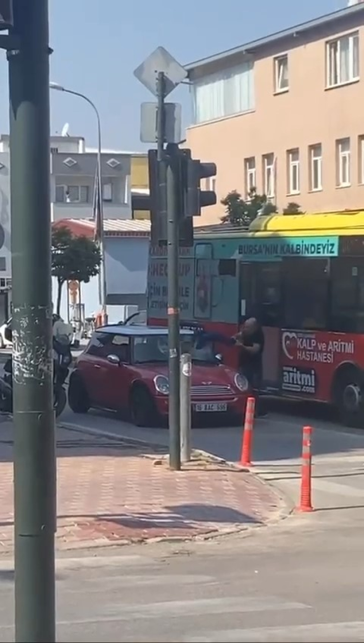 Bir süre aracına acımasızca vurmaya devam eden şahsı polisler araya girerek durdurdu.