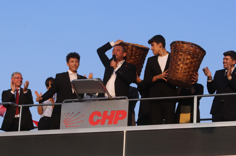 İki gencin protesto amaçlı küfe getirdiğini gören Özel, gençleri yanına çağırdı. Burada eleştirilerini sürdüren Özel, “Geçen gün Tayyip Bey'i dinliyorum.