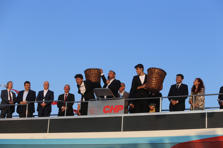 CHP Genel Başkanı Özgür Özel, Bursa'nın Mudanya ilçesinde vatandaşlara otobüs üzerinden seslendi.