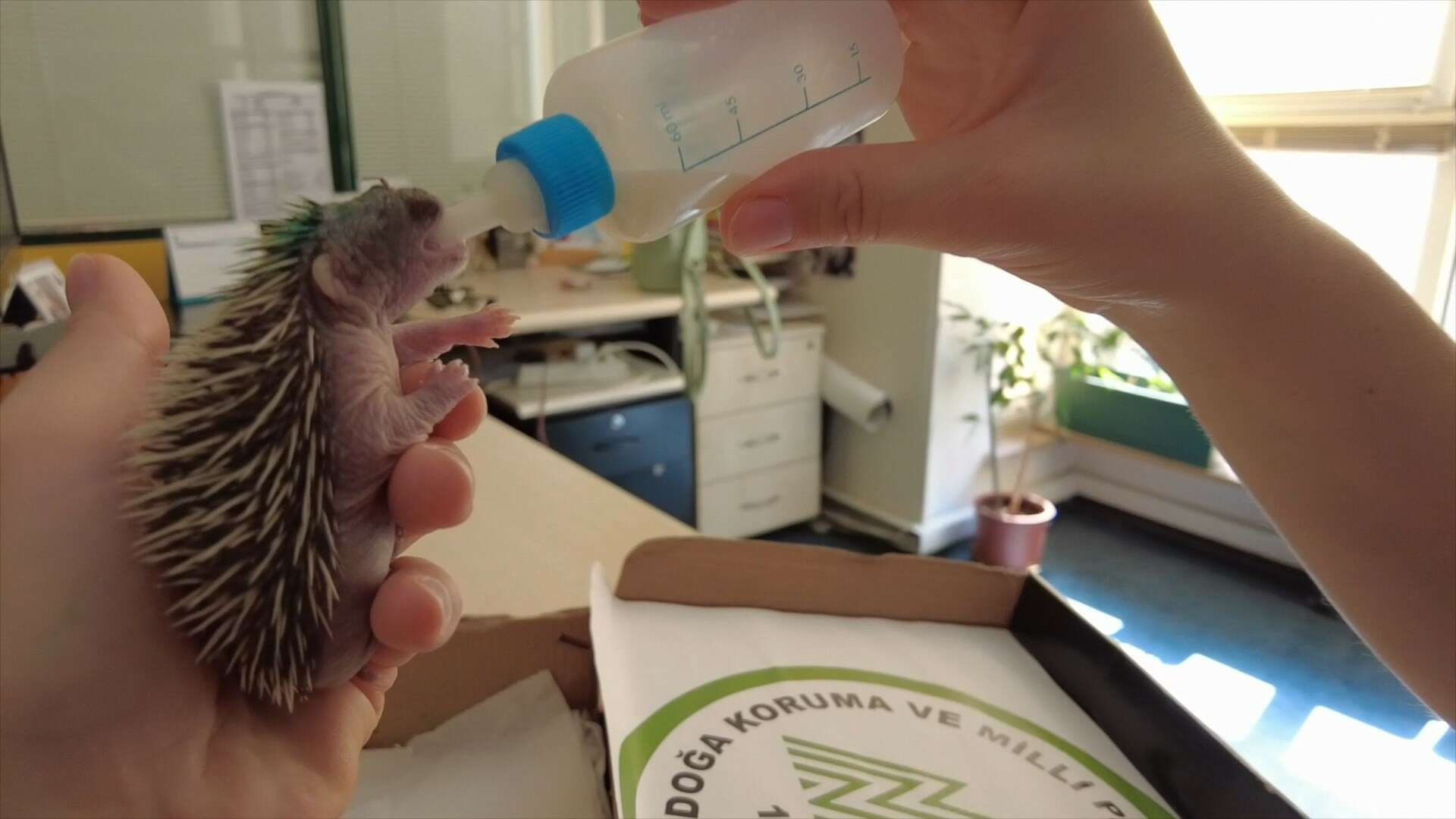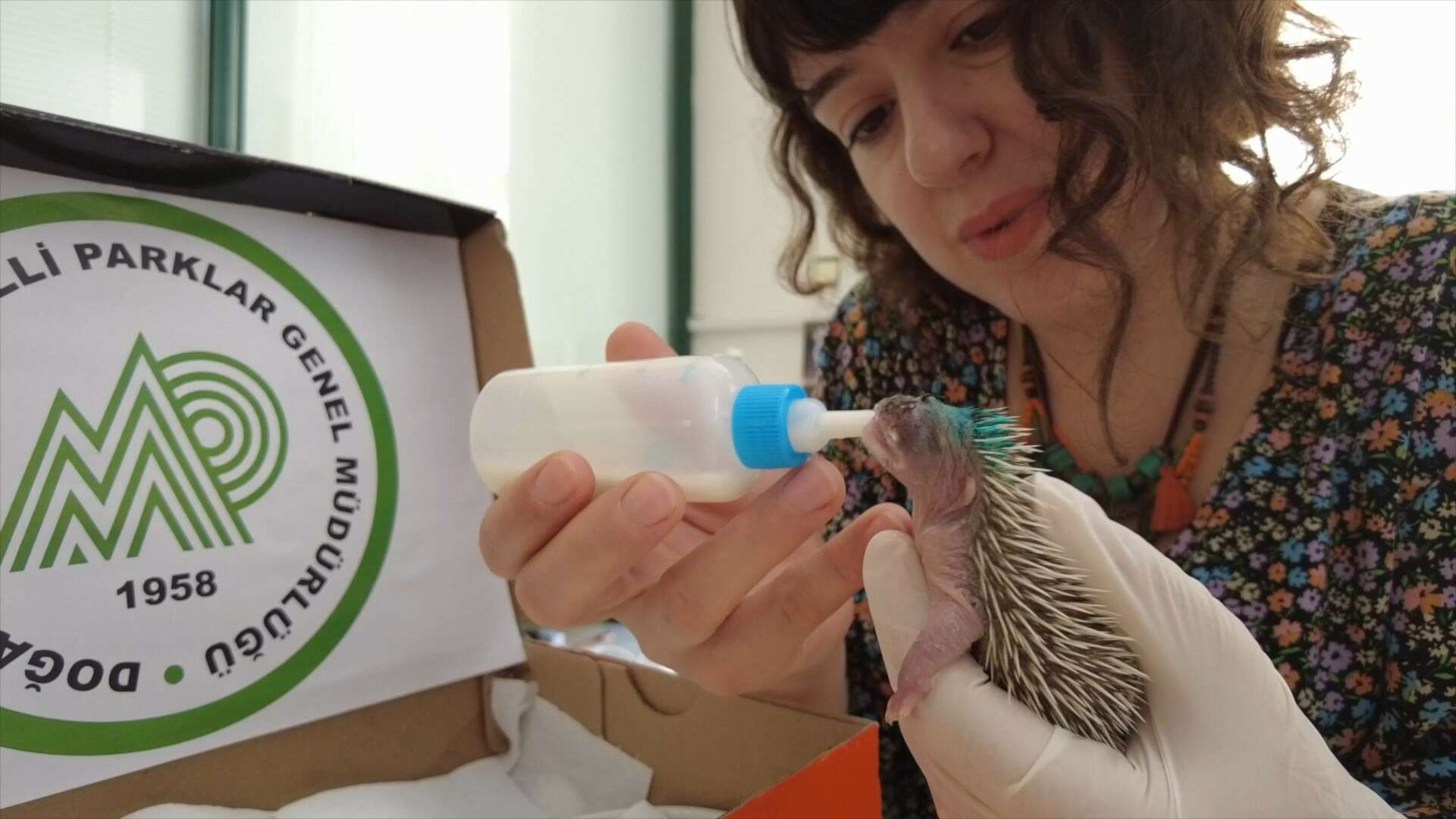 Biberon ile beslenen kirpinin sağlık durumunun iyi olduğunu ifade eden Veteriner Hekim Nihal Bilgici Yıldız ise, “Özellikle bu zamanlarda çim biçerken, çimlerin arasına gizlenen bu kirpi ailelerine dikkat edilmelidir.