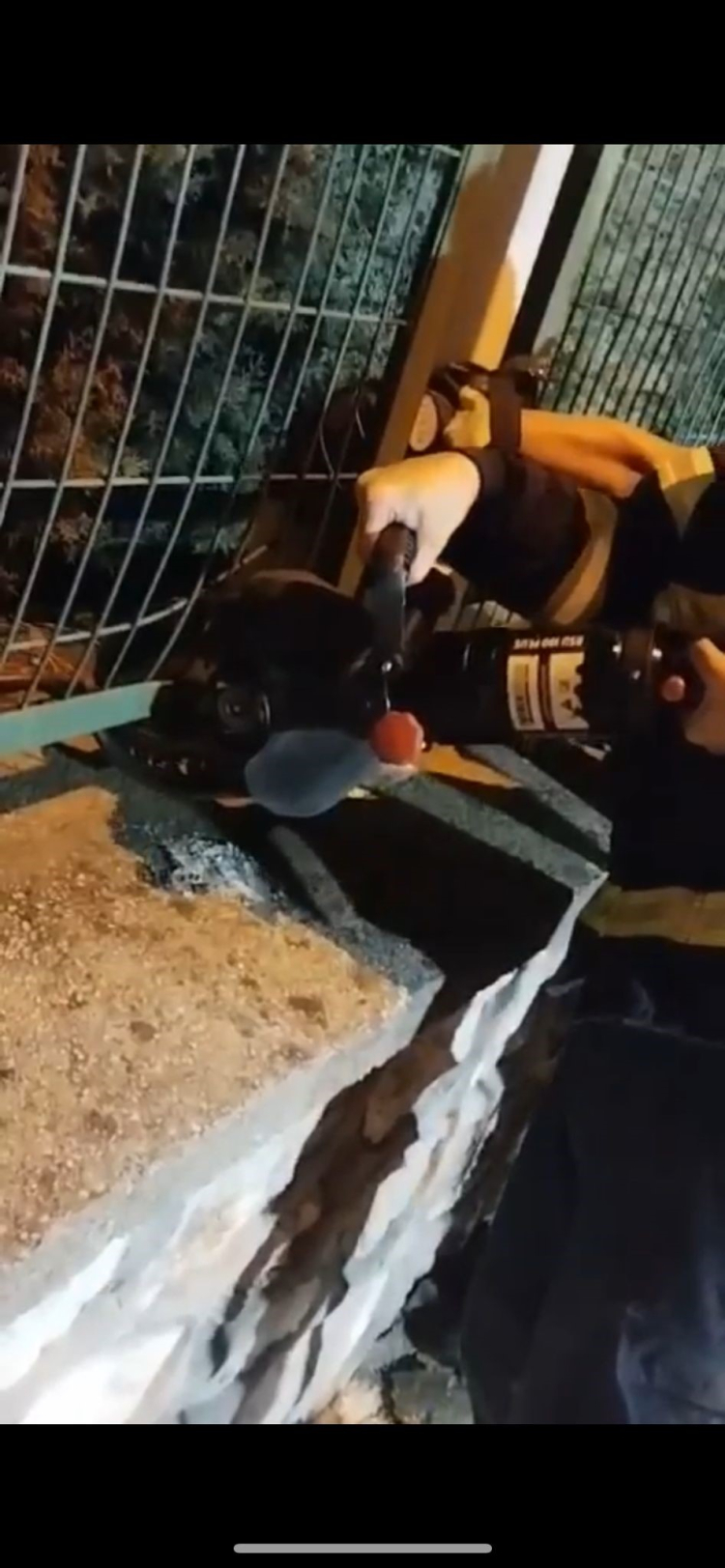 Bölgeye sevk edilen itfaiye ekibi, demir korkuluklara sıkışan köpeği kurtarmak için dakikalarca ter döktü. Demir korkulukları keserek köpek sıkıştığı yerden kurtaran ekiplerin mücadelesi kameraya anbean yansıdı. Çığlık atarak kurtulan yavru köpek daha sonra yaşam alanına bırakıldı.