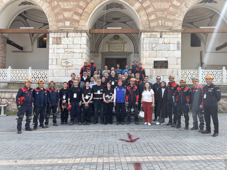 Bursa'da '6 Şubat Depremlerinin Kültürel Miras Üzerindeki Etkilerinin Değerlendirilmesi' çalıştayı çerçevesince I. Murad Hüdavendigar Külliyesi'nde gerçekleştirilen deprem tatbikatı gerçekleştirildi.