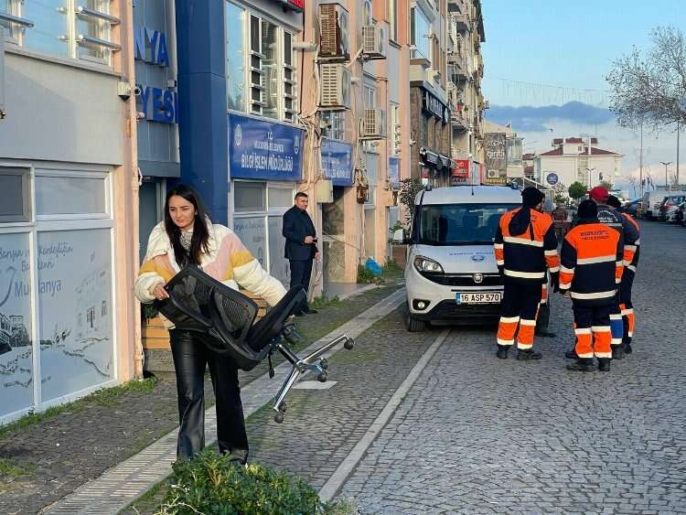 Dün yaşanan depremin ardından içeri girmeyen çalışanlar, bugünde işe geldiklerinde ise tahliye ile karşılaştı. Mudanya Belediye Başkanı Hayri Türkyılmaz, çalışanların vatandaşlara diğer ek binalarda hizmet vereceğini açıkladı.