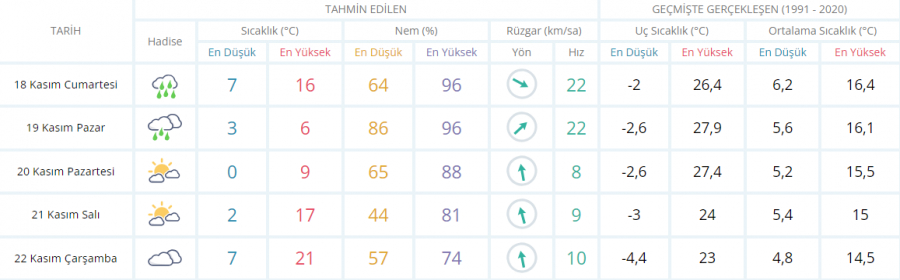 5 GÜNLÜK HAVA DURUMU TAHMİNİ