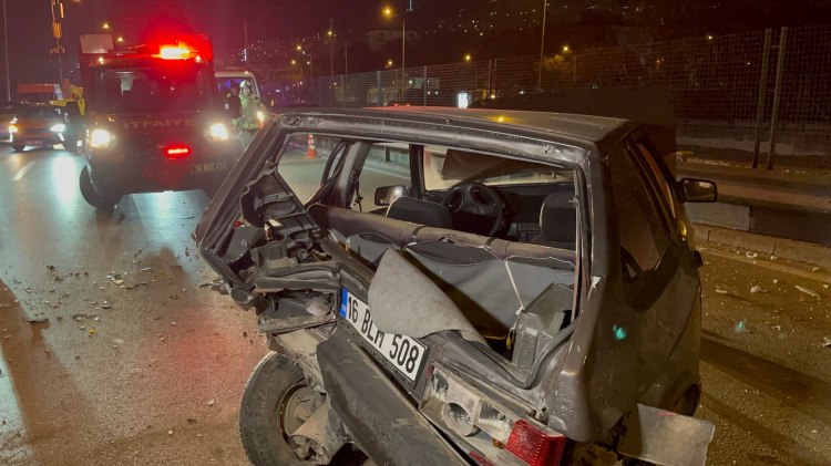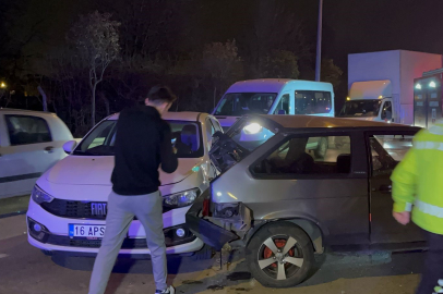 Bursa'da direksiyon hakimiyeti kaybedilen araç, önündeki 3 otomobile çarptı.