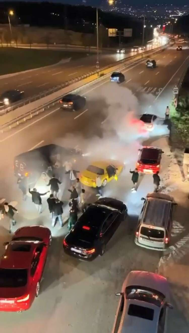 İki şeridi kapatıp oynamaya başlayan konvoydaki vatandaşlar, trafiğe aldırış etmedi.