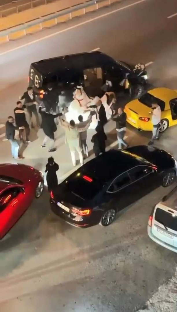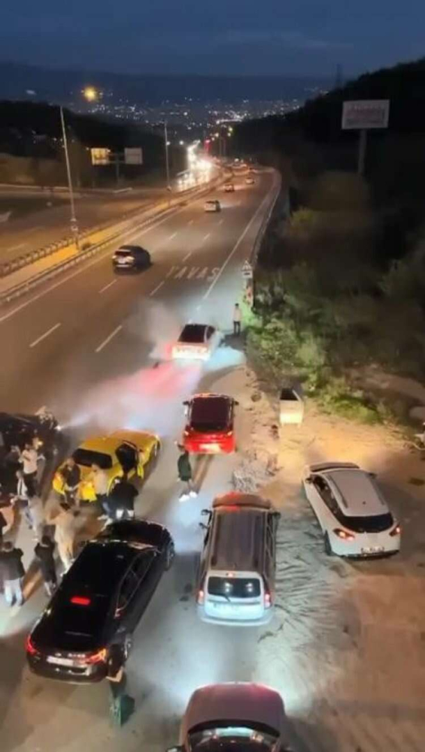 Düğün konvoyundaki araçlar, Bursa-Mudanya yolu Tepedevrent mevkiinde yolun ortasında durdu.