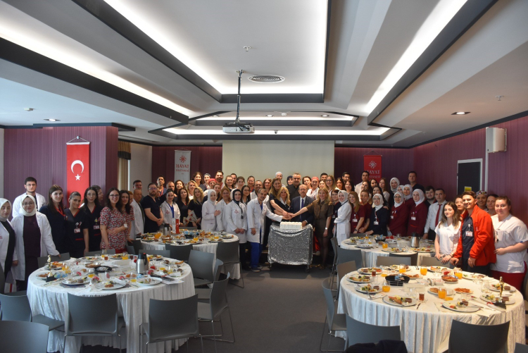 Hayat Hastanesi Yönetimi, Dünya Hemşireler Günü’nde anlamlı bir etkinliğe imza atarak bünyelerinde görev yapan hemşireler ve sağlık çalışanları ile kahvaltı organizasyonunda bir araya geldi.