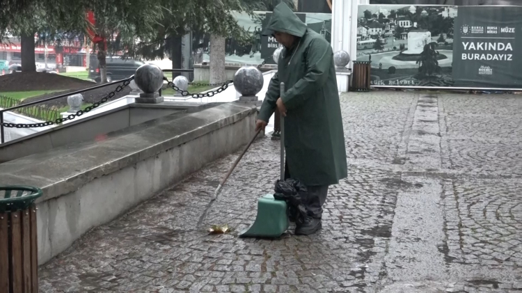 Bursa'da temizlik görevlisi olan Fuat Sayhan, temizlediği bankın altında bulduğu altın dolu çantayı polis merkezine teslim etti.