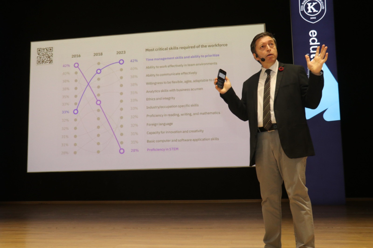 Programın son konuşmacısı Prof. Dr. Sinan Canan ise, insanın temel özelliklerinin ve kazanması gereken beceriler konusunun yapay zeka çağında daha önemli hale geldiğini söyledi. Prof. Dr. Canan, “Yapa zeka henüz emekleme aşamasında, ama çok kısa sürede hayallerimizi aşacak bir gelişme gösterecek. Bu yüzden yapay zekayı iyi kullanmamız lazım, ama insanın her zamankinden daha çok kendini bilmesi, kendini anlaması, kendi hayallerine ilerleyecek donanımı edinmesi çok önemli” şeklinde konuştu.