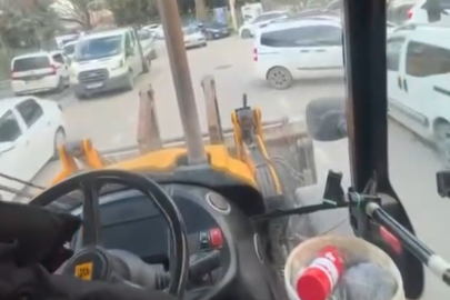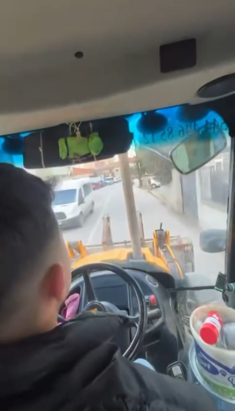 Bursa'da iddiaya göre ehliyeti olmayan bir genç, sokak aralarında iş makinesi sürdü.