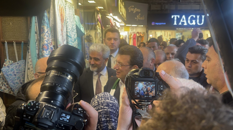 Baş başa görüşmenin ardından, tarihi çarşıda esnaf ve vatandaşlarla bir araya gelen İmamoğlu, Tophane'ye giderek Alplerin nöbet değişim törenini takip etti.