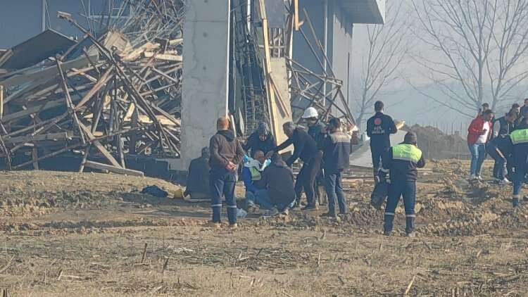 Fabrika inşaatı çökünce 6 işçi yaralandı