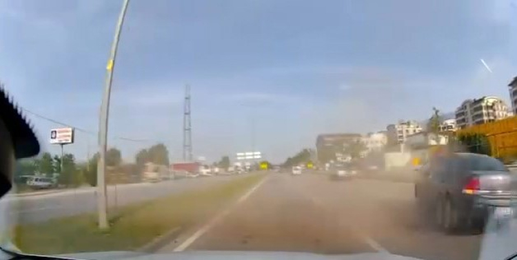 Saniyelerle facianın kıl payı atlatıldığı diğer istikamete giden otomobildeki araç kamerası tarafından kaydedildi.