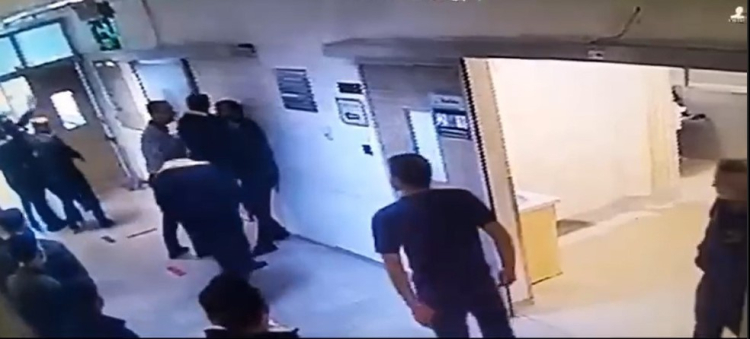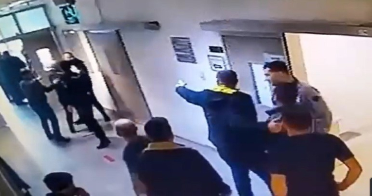 Hastane asansöründe başlayıp, koridorda devam eden arbede anları güvenlik kamerasına yansırken, 3 şüpheli polis ekiplerince yakalandı.