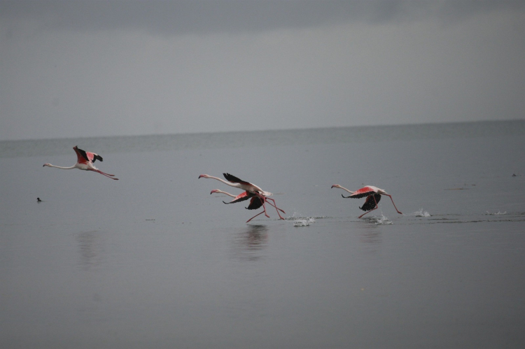 Göç yolunda olan flamingolar ise İznik Gölü Orhangazi sahilinde görüntülendi.