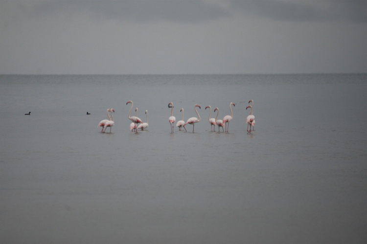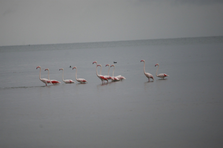 Flamingoların kışlama noktası konumunda bulunan koruma altındaki sulak alan, gün batımında da ayrı bir görsel şölen sunuyor.