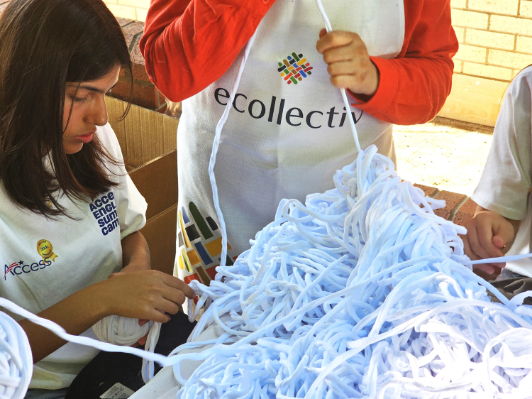 Yeşim Grup’un Uludağ Soroptimist Kulübü ve Karapınar Kadın Kooperatifi ile bir araya gelerek hayata geçirdiği Ecollectiv projesi kapsamındaki saha çalışmasına katılan gençler, Yeşim’in üretim fazlası olan kumaş kırpıntı ve şeritlerini renklerine göre tasnifleyip ayırarak üretime hazır hale getirdi. Bu materyallerle süs eşyaları, çanta, yastık, sepet, bileklik ve anahtarlık gibi çeşitli ürünler üretip satan Karapınarlı kadınlar, böylelikle hem ekonomik olarak güçleniyor hem de atık kumaşlardan yapılan ürünlerle sürdürülebilirliğe katkı sağlıyor.