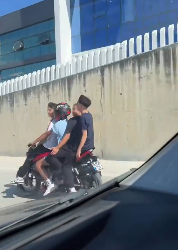O anları gören bir sürücü şaşkınlık içinde cep telefonu kamerasıyla gençlerin tehlikeli yolculuğunu kayda aldı.
