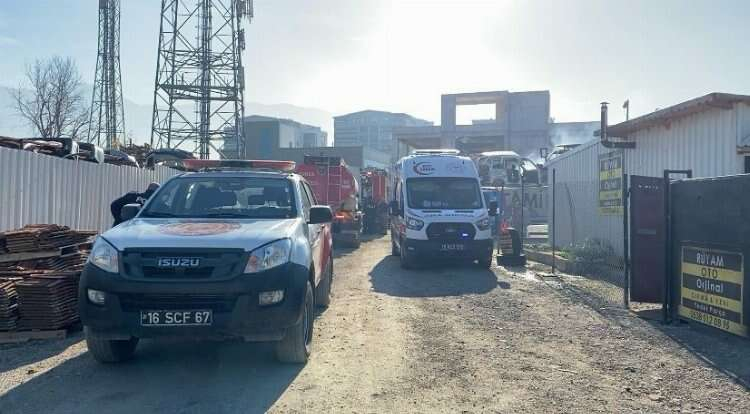 Bursa’da çıkma araç parçalarının satıldığı geri dönüşüm tesisinde sobadan çıkan yangın korku dolu anlar yaşattı.