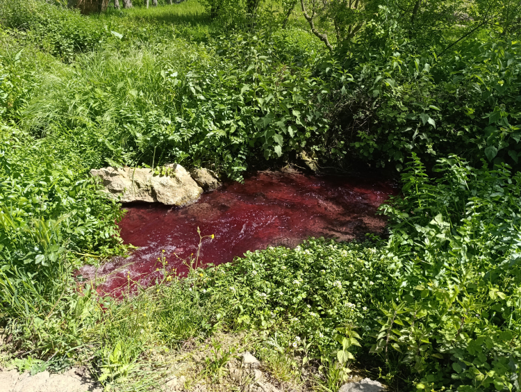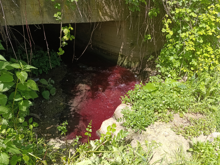 Bursa'da dünyaca ünlü turşuların üretildiği coğrafi işarete sahip Gedelek Köyü'nde dereler kızıla boyandı.