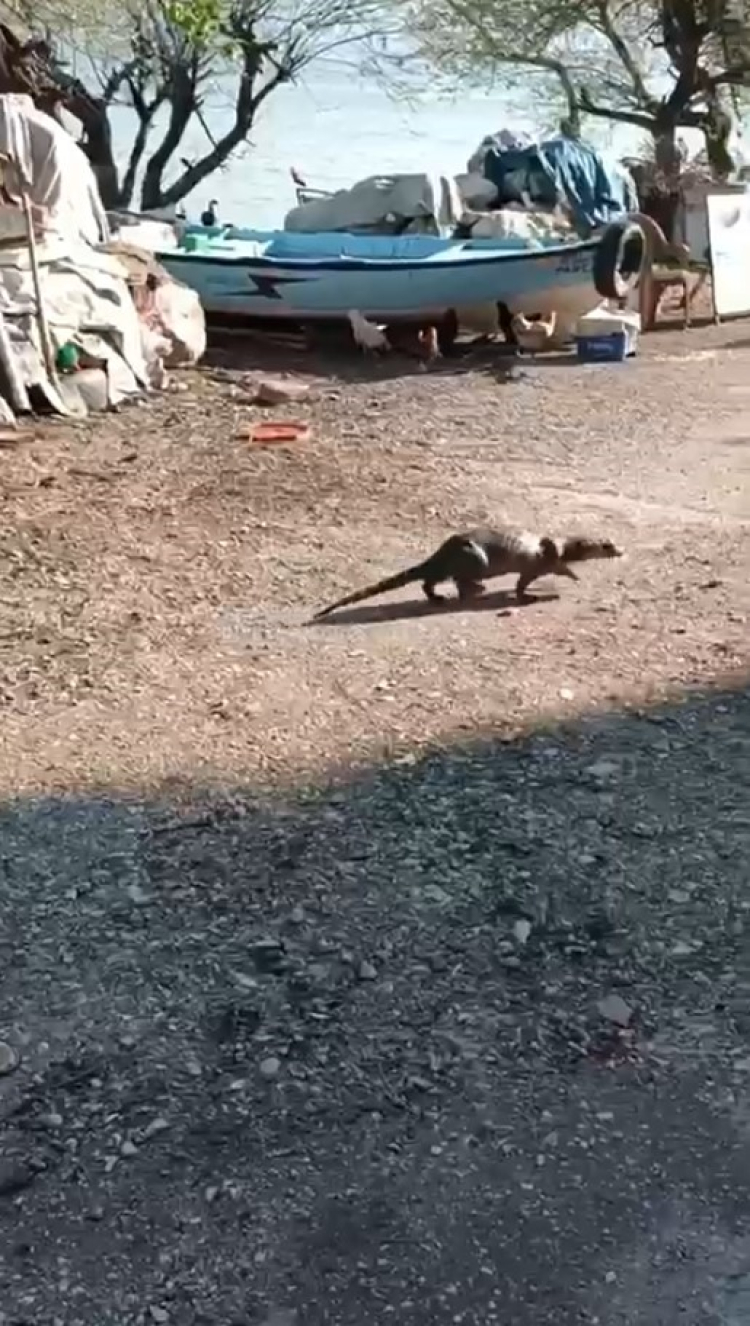 Başta tavukların kovaladığı su samuru fare zannedilse de yakalanan balıkları çalmaya başlayınca su samuru olduğu anlaşıldı.