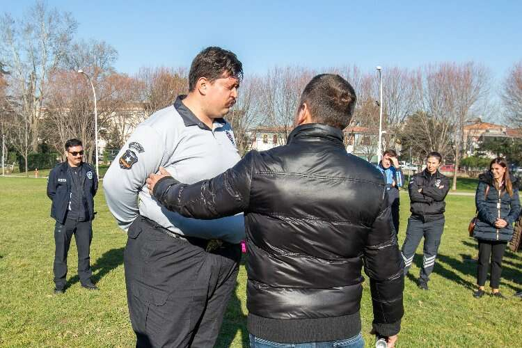 Bursa Büyükşehir Belediyesi’nin açık ve kapalı hizmet alanlarında görevli özel güvenlik personeli, göz yaşartıcı spreyin etkilerini önce kendi gözlerinde hissetti.