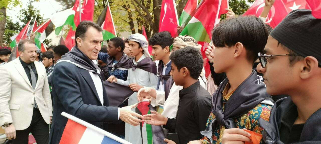 Ellerinde "Gazze'nin üzerindeki puşide-i siyahı kaldıracağız." yazılı siyah puşideler bulunan öğrenciler, Türkiye, Filistin ve kendi ülkelerinin bayraklarıyla Gazzeli mazlumlara desteklerini bildirdi. AK Parti Bursa Milletvekili Refik Özen ve Osmangazi Belediye Başkanı Mustafa Dündar da etkinliğe katılarak öğrencilere destek verdi.