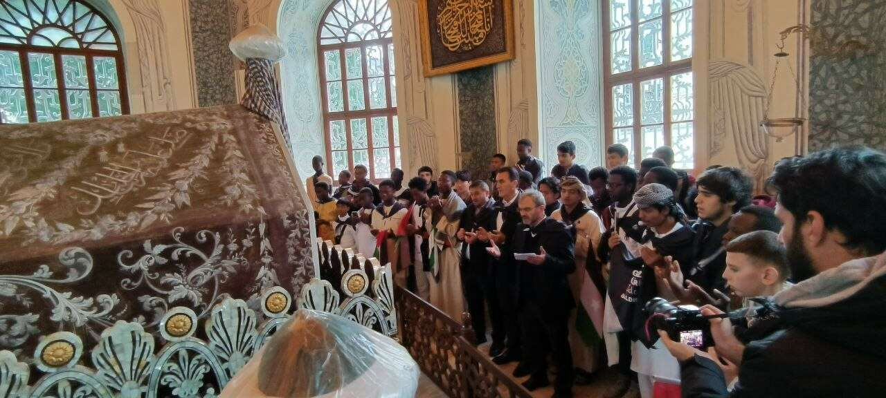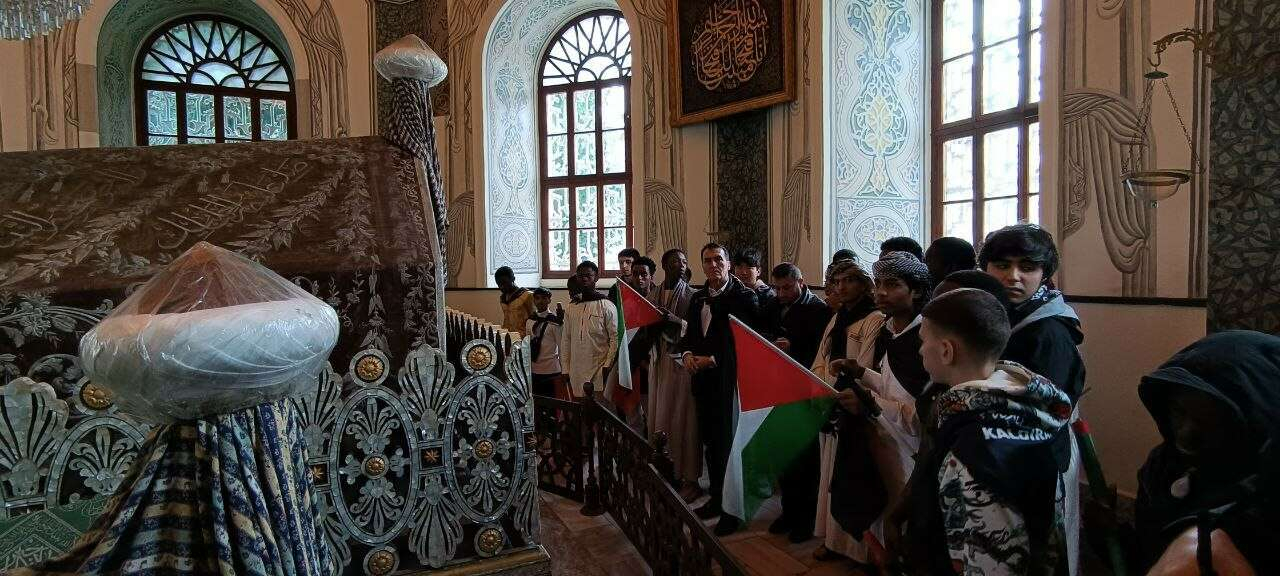 Öğrenciler, Osmanlı İmparatorluğu'nun kurucusu Osmangazi Han'ın türbesini ziyaret edip hep birlikte dua okuduktan sonra türbenin kapısında nöbet bekleyen Osmanlı Alplerinin devir teslimini izledi ve ardından da toplanan kalabalığa "Gazze’nin üzerindeki Puşide-i Siyahı Recep Tayyip Erdoğan kaldıracak" yazılı örtüleri dağıttı.