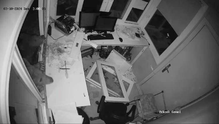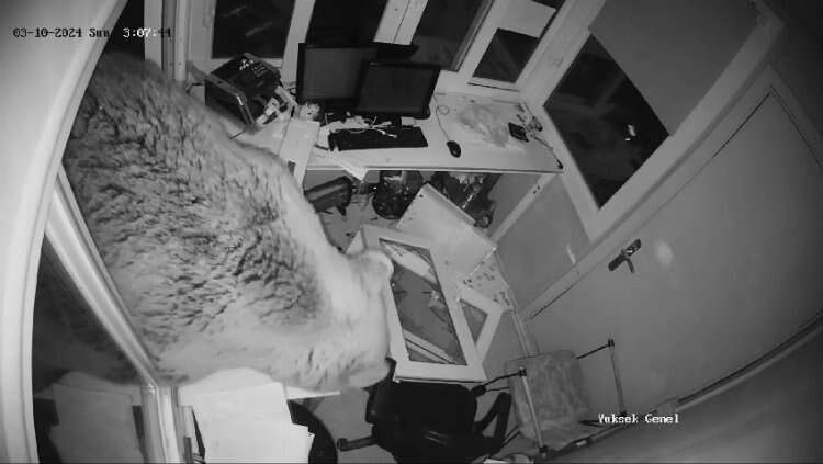 Uludağ’ın ormanlarında yiyecek bulamayan ayılar, insanların yaşadığı ortamlara inerek yiyecek aramaya devam ediyor. Güvenlik kameralarına yansıyan son görüntüler, Sarıalan Bölgesinde kayda alındı. 2 yavrusu ile birlikte yiyecek arayan ayı, önüne gelen ne varsa yıktı geçti. Yavrularını doyurmak için yiyecek bulmak zorunda olan yetişkin ayı, çöp konteynerlerinde bir şey bulamayınca, Macera Park'ın güvenlik kulübesine girmeye çalıştı. Gişenin camını zorlayarak indiren ayı, içeri giremeyince diğer camı da zorlayarak kırdı.