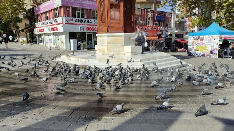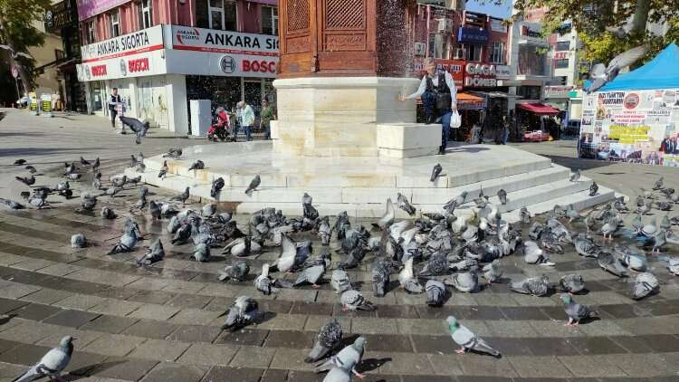Meydandan geçen vatandaşlar ise güvercinlerin keyifli anlarını uzun süre izledi.
