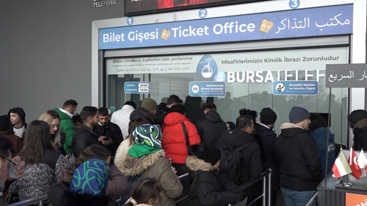 Hafta sonu Uludağ'da, otelde konaklayanların yanı sıra günübirlikçilerin de gelmesiyle yoğunluk yaşanıyor. Kimi kendi aracıyla zirvenin yolunu tutarken, kimi ise araç trafiğine takılmamak ve Bursa manzarasını izlemek için teleferiğe yöneldi. Sabahın ilk saatleriyle vatandaşların akın ettiği teleferikte, metrelerce kuyruk oluştu.