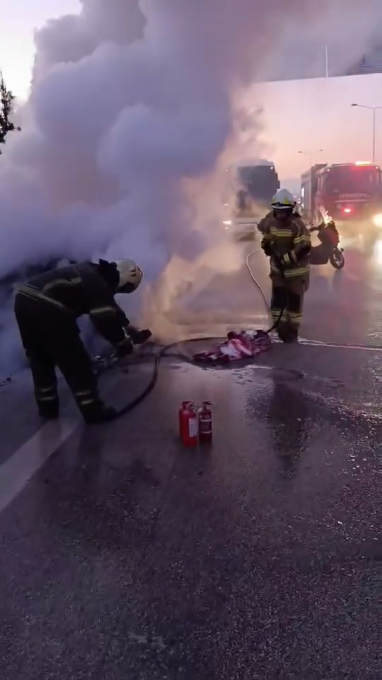 Alevlerin bir anda çoğalmasıyla vatandaşlar da araçlarından aldıkları yangın tüpleriyle destek olmaya çalıştı. İhbar üzerine olay yerine itfaiye ekipleri gelirken, otomobilin motor kısmı tamamen küle döndü.