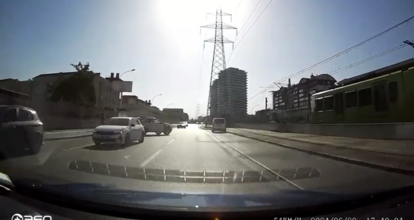 Hatalı dönüş yapan sürücünün araç içinde savrulurken, çevredekiler de kaza sonrası büyük panik yaşadı.