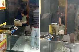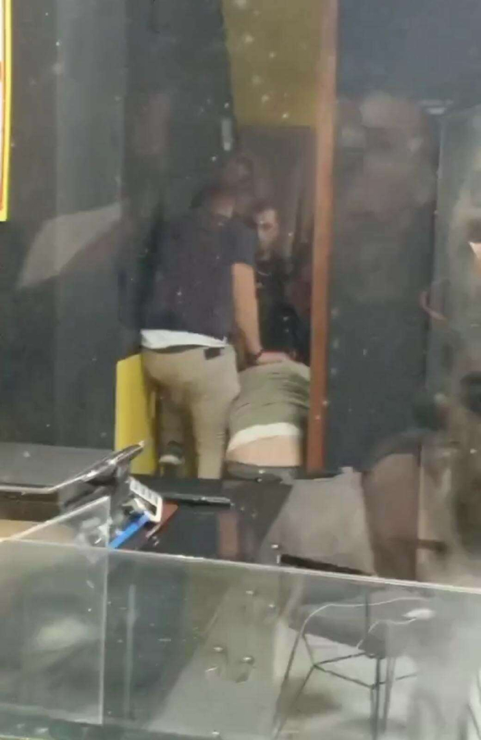 Görüntülerde çevredekilerin de “Kavgayı ayırmayın” diye destek verdiği duyuldu.