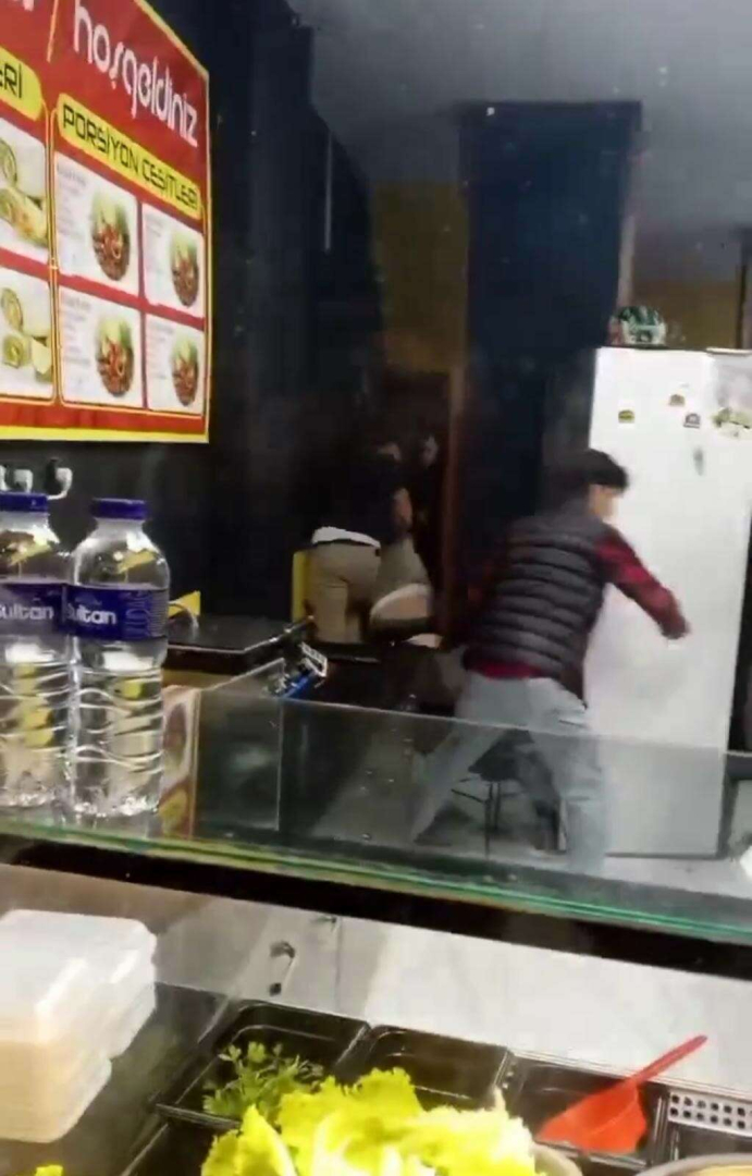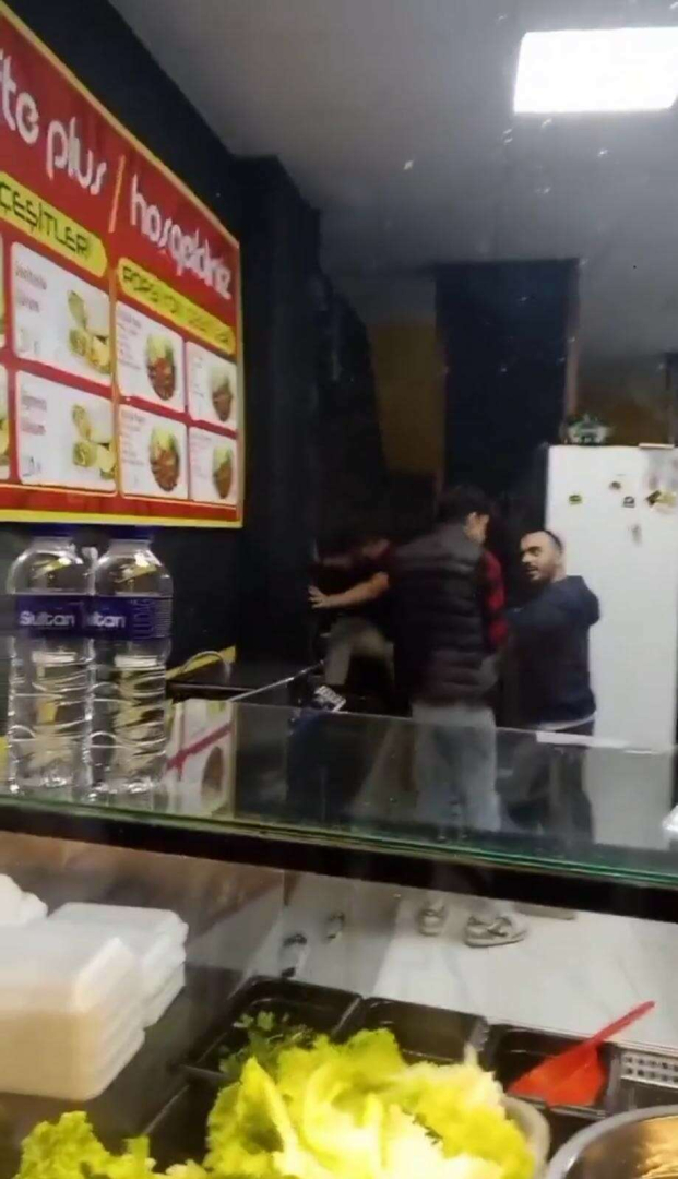 Bursa’da bir çiğ köfteciye giren hırsızlık şüphelisine dükkan sahipleri meydan dayağı attı.