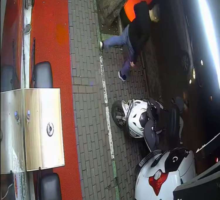 Olayın şokunu giren çevredekiler hemen 112 ekiplerini arayıp yardım isterken, yere düşen motosiklet sürücüsü ve yayanın yanına koştu. Sağlık ekiplerince kontrolleri yapılan iki kişinin ciddi bir durumu olmadığı öğrenilirken polis kazayla ilgili tahkikat başlattı. O anlar bir iş yeri kamerasına saniye saniye yansıdı.
