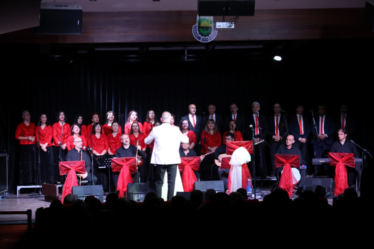 Şef Yücel Düzel yönetimindeki Türk Halk Müziği Korosu, seslendirdikleri kahramanlık türküleriyle salondaki vatandaşlara unutulmaz bir gece yaşattı.